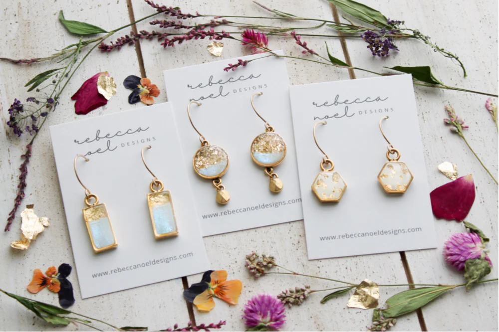 Rebecca Noel Designs is a handmade jewelry business based in the Cincinnati/Morrow, Ohio area, specializing in beautifully crafted resin jewelry that incorporates pressed flowers and botanical elements. Owner and artist Rebecca creates unique, elegant pieces — from necklaces to earrings — that capture the natural beauty of flowers and meaningful moments.